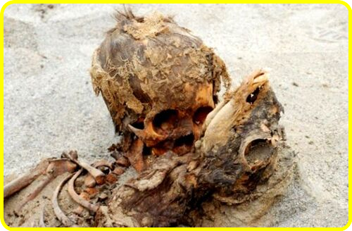 -Hasta hace muy poco los sacrificios humanos en el Perú se reducían a unos pocos caso, había rumores que se habían dado entre los mochicas y los chimús. Los caso de algunos niños ofrecidos en situaciones muy especiales por los incaicos, eran excepcionales, apenas se han encontrado una docena de momias en las laderas de montañas a gran altura. Por eso ha sorprendido tanto, la evidencia del que podría ser, el mayor sacrificio humano de menores, en el continente y en el mundo. Recientemente se ha encontrado en la costa norte peruana, a pocos metros del océano Pacífico y cerca de Chan-Chan: la ciudad de barro más grande de Latinoamérica; las huellas del sacrificio de los chimús que relatan en el manuscrito. En un artículo reciente, el arqueólogo Prieto escribió: "a partir de lo investigado, el sacrificio de los niños podría haber ocurrido por la presencia del fenómeno climático conocido como El Niño -caracterizado por el calentamiento de las aguas marinas- que causan potentes lluvias e inundaciones. Posiblemente ofrendaron lo más importante que tenían como sociedad y lo más importante es el futuro, los niños, y las llamas eran animales muy importantes en su economía porque en esa época no había caballos ni otras bestias de carga". En la ceremonia los chimús, auténticos expertos en anatomía, sacaron el corazón a cientos de infantes y llamas, luego de cortar el esternón y abrir la caja torácica.