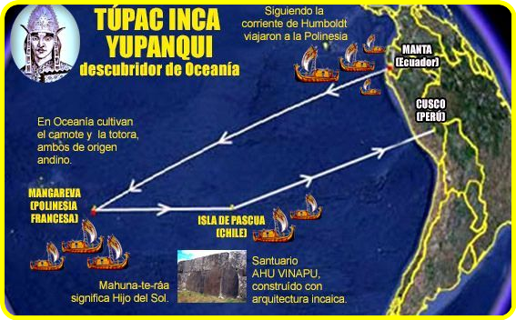 -Durante mucho tiempo-nos explicó don Miguel- se consideró una fábula para enaltecer a los Incas, que uno de ellos: Tupac Yupanki, hubiera dirigido una expedición de esa naturaleza. Todo debió surgir de la crónica de Sarmiento de Gamboa, que escribió: